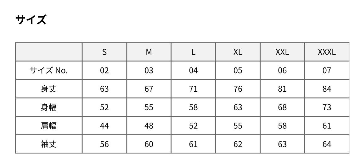 L:身丈71・身幅58・肩幅52・袖丈61(cm)